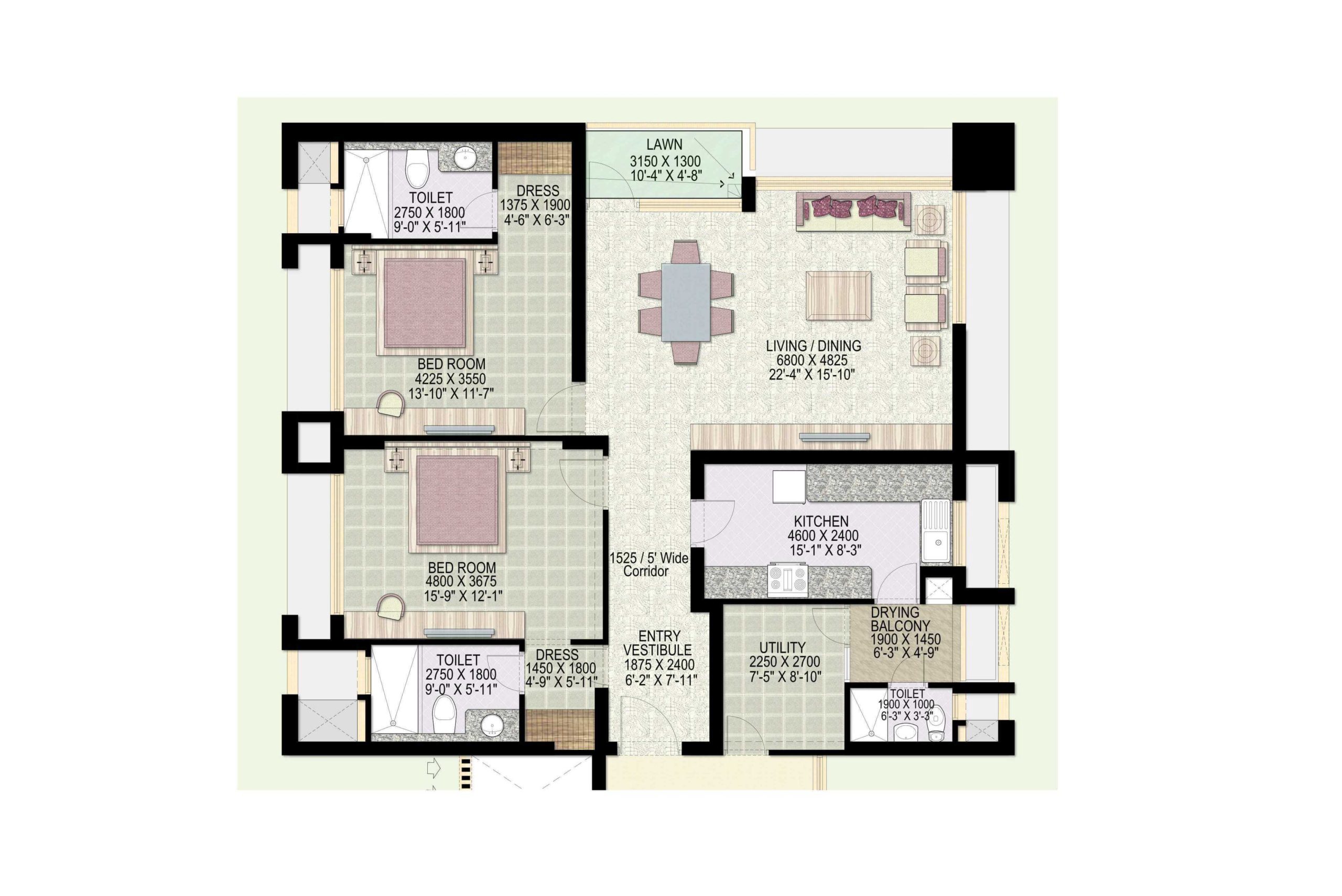 2BHK 1823 Sq.ft Jaypee Kalypso Court